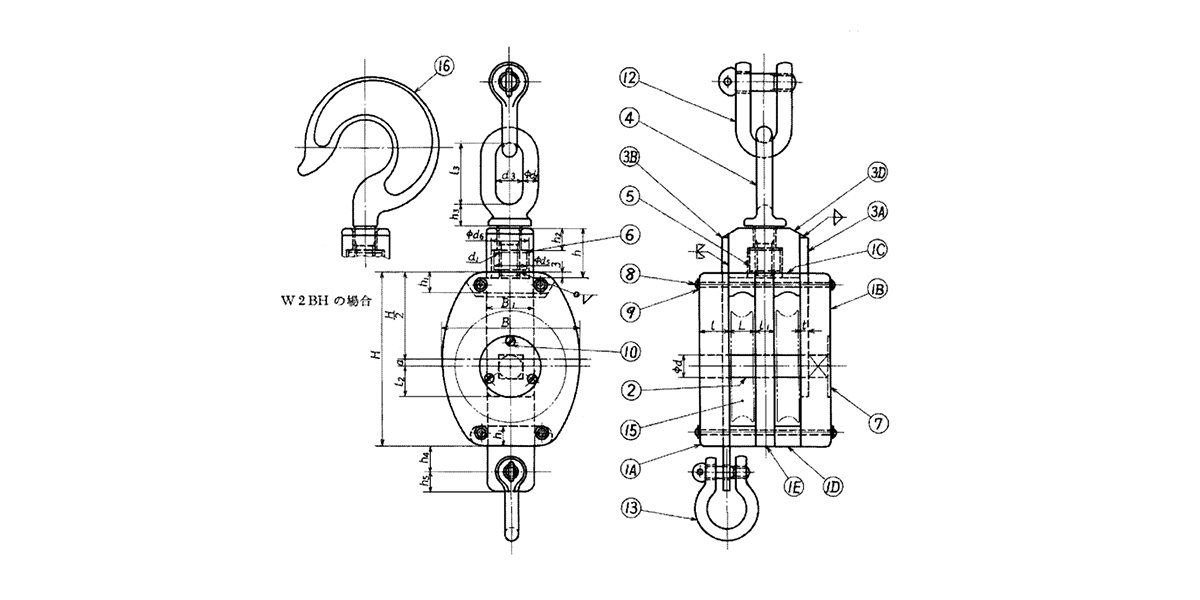 | چفت کردن | مدل | ارتفاع پوسته (میلی متر) | قطر طناب (میلی متر) | SWL (KN) | TL (KN) | وزن (کیلوگرم) |